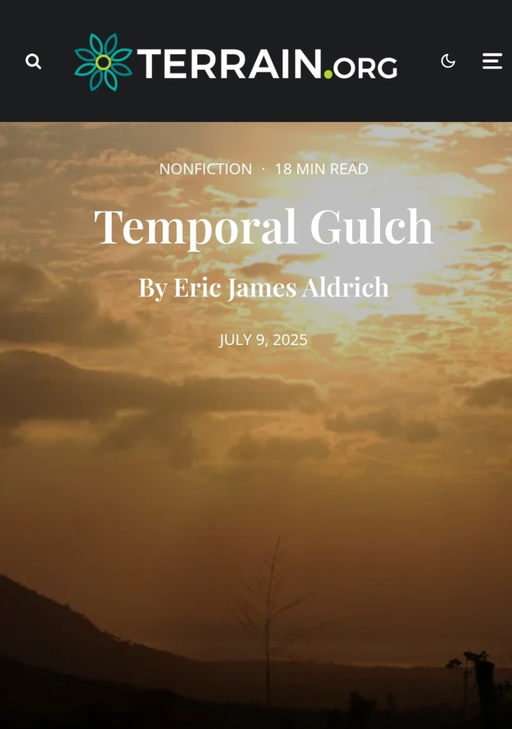 In other Terrain.org news, I am now an assistant nonfiction editor for their site. I’m a big fan of what they publish, so I’m excited to read new writers through that role. Elizabeth and Simmons from Terrain have really supported me, so I’m grateful for an opportunity to support them, too.